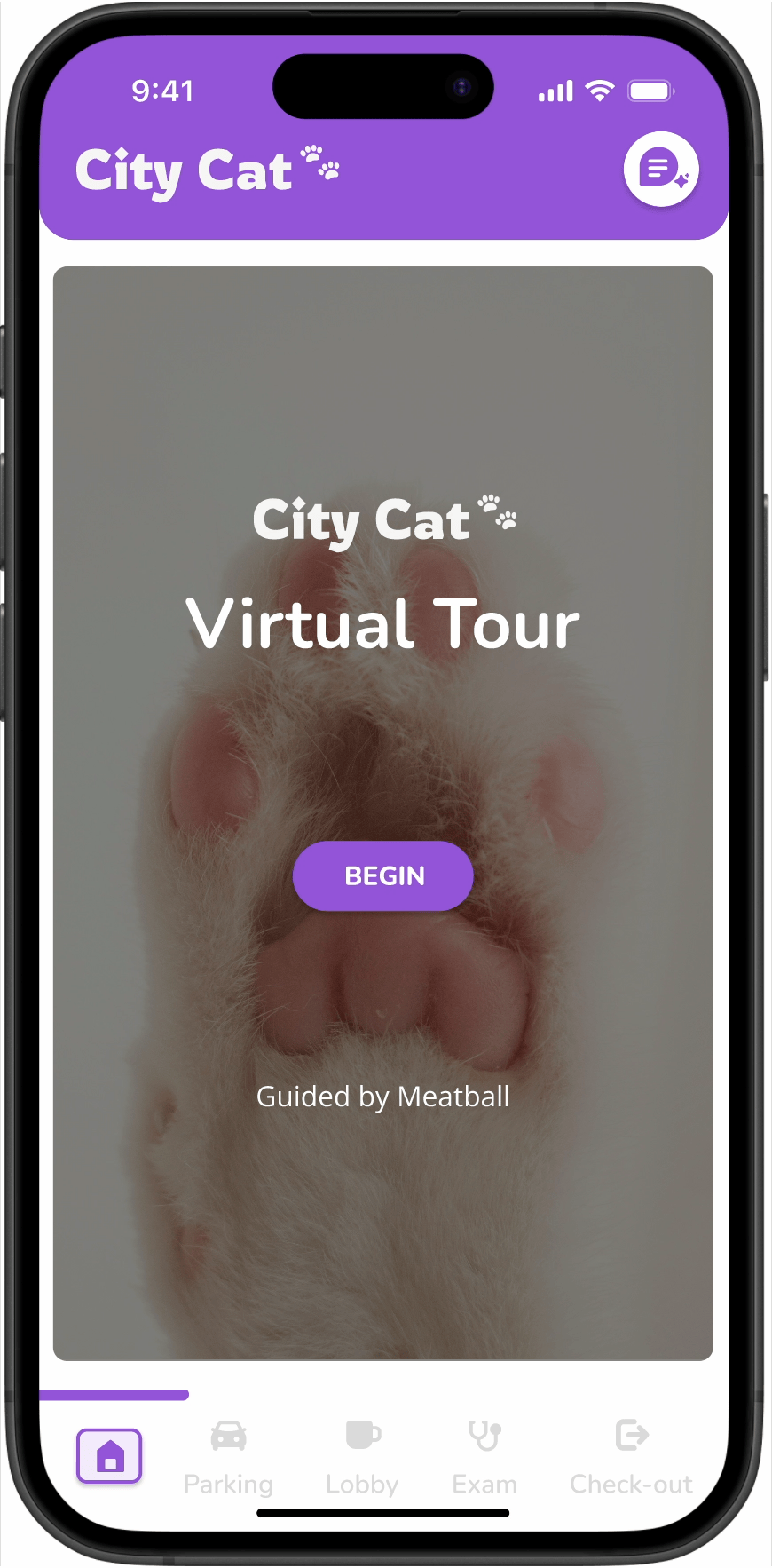 The Cat City Application is a digital solution designed to streamline the client experience and reduce stress for both cats and their owners. It transforms a familiar environment into an extension of the clinic, creating additional space, minimizing stress, and improving overall efficiency with real-time updates and communication.